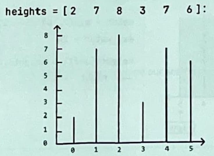Input: heights = [2, 7, 8, 3, 7, 6]