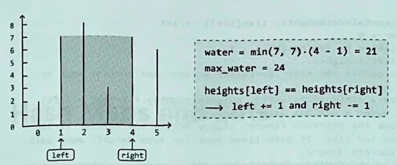 Finally, the left and right pointers meet.We can conclude our search here and return max_water: