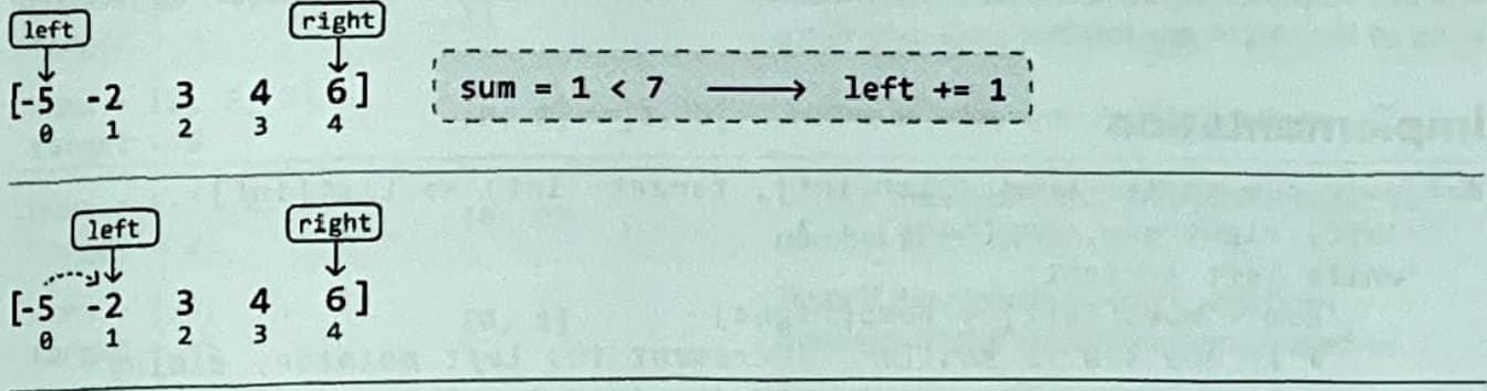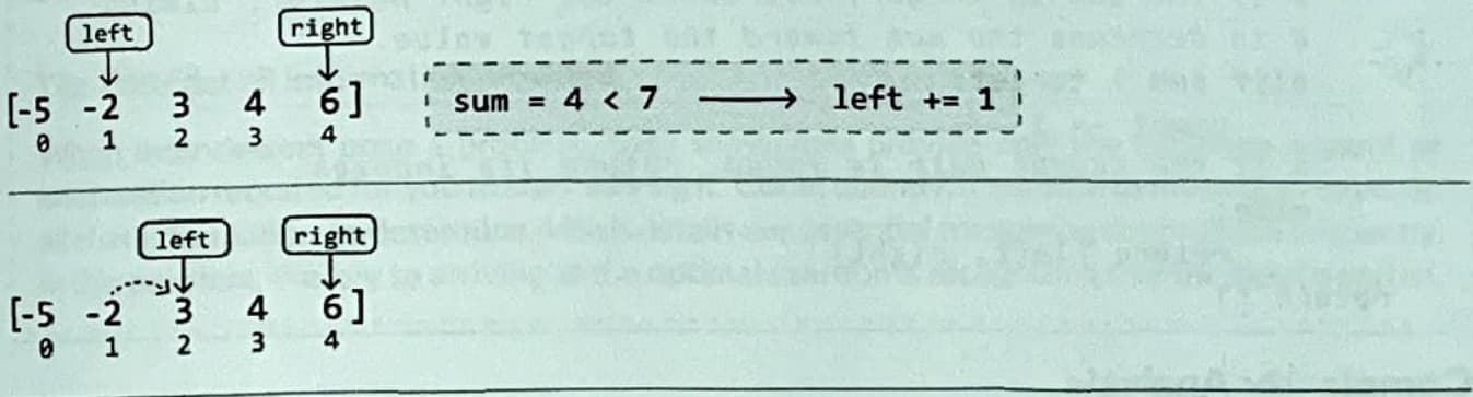 Again, the sum of the values at those two pointers (4) is too small. So, let's increment the left pointer: